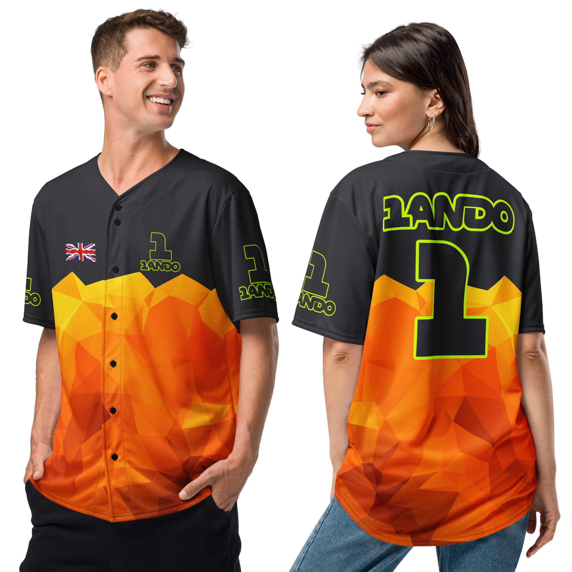 This all-over print baseball jersey is a fantastic garment to celebrate your love for Formula 1, McLaren, and British sensation Lando Norris. A uniquely designed one-off piece that will separate you from the masses. It’s made from recycled fabric and features moisture-wicking fabric for all-day comfort.