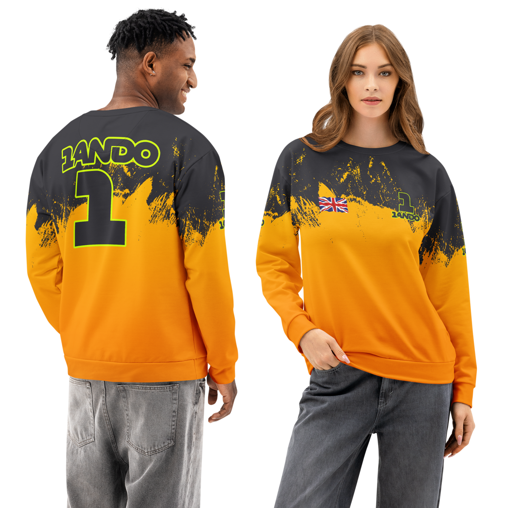 Celebrate the latest Formula One World Champion, Lando Norris. Lando has continued the glory of previous British drivers to win the FIA F1 title. This colourful sweatshirt in his McLaren colours will display your fandom in style!